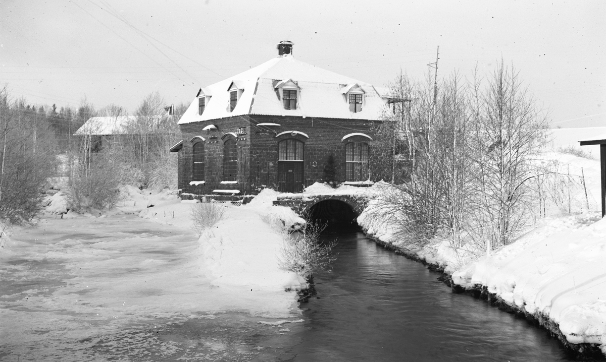 Kraftstationen i Berg vid Hoån. Hellströms smidesfabrik till vänster.
