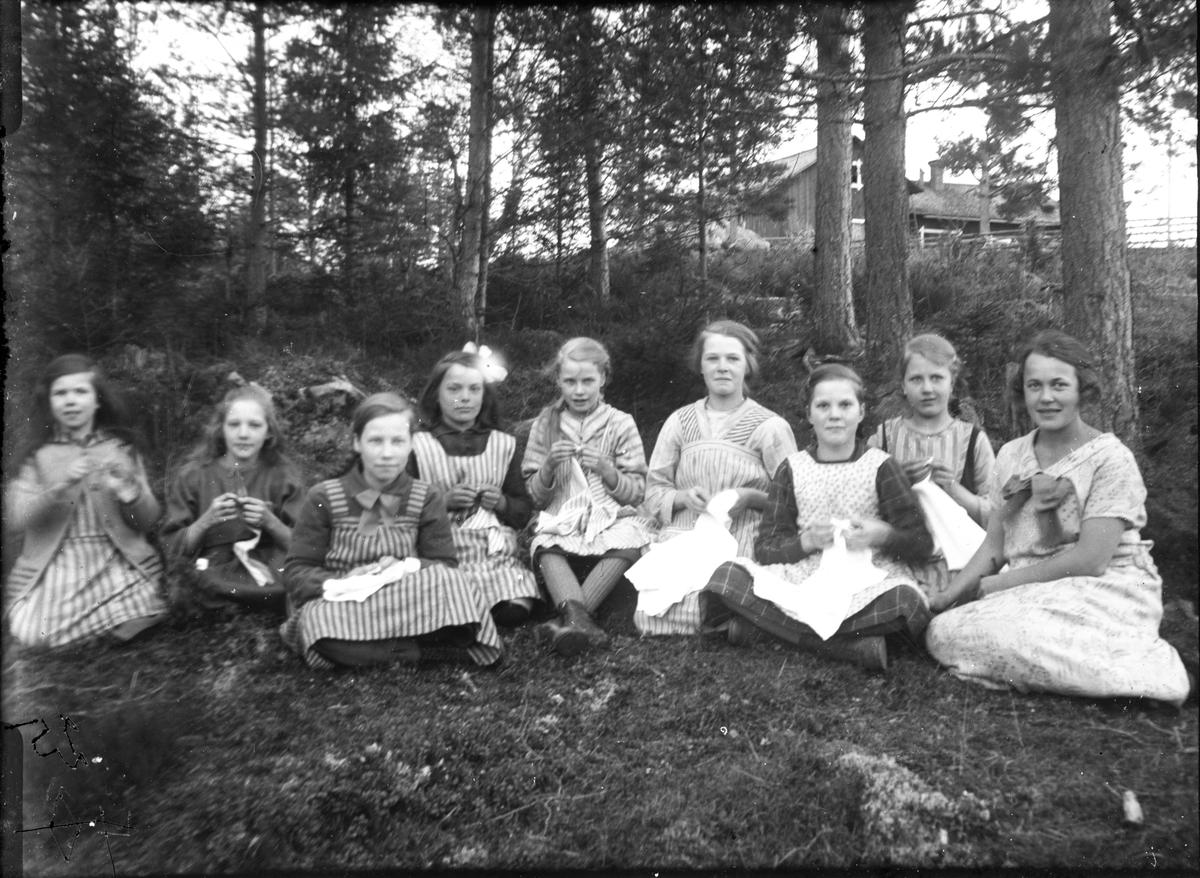 Skolklass, lärarinnan heter Hilda Hedvall, Annefors.
