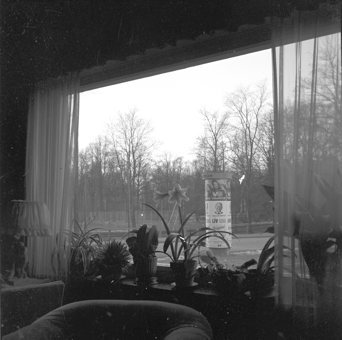 Disponent Skoglund, utsikt från hans fönster mot Västra vägen. 23 november 1948.