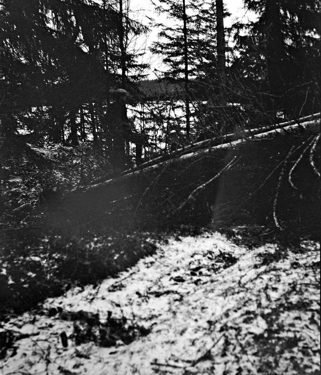 Från stormfällningen vid Skessen där Joel Hansson tittar ut över förödelsen.