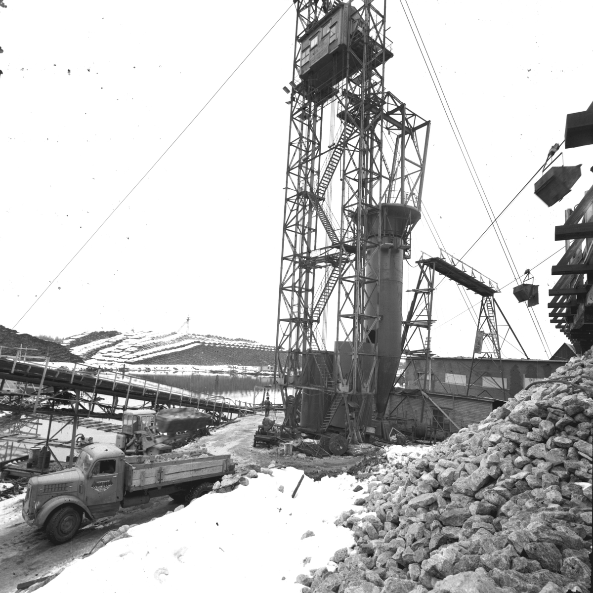 Bygge av transporttorn, Portströms Mekaniska Verkstad. Korsnäs AB. Den 31 januari 1961