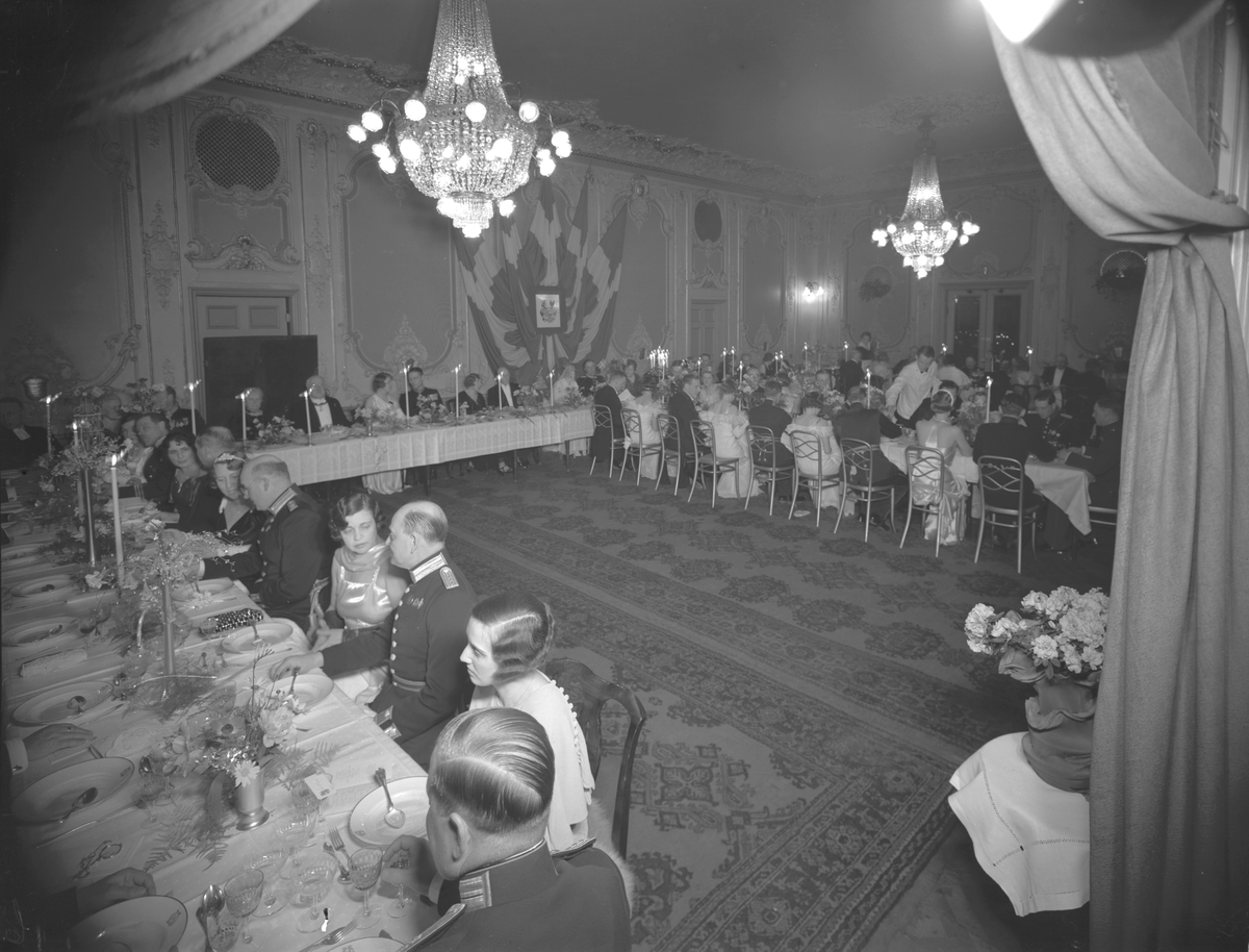 Brudparet Wera Åkerson och Hilding Kruuse af Verchou, vid bröllopsmiddagen.