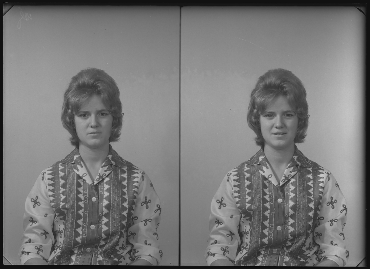 Kvinnoporträtt, pass. Gerd Karlsson, Mölntorp, Kolbäck. Ur Gustaf Åhmans samling.