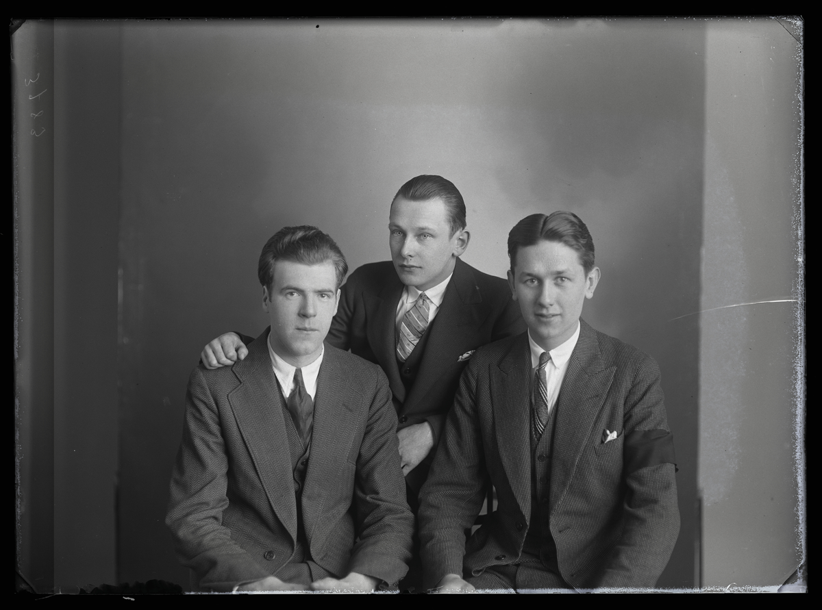 Grupporträtt, tre personer. Martin Stafström, Bergsgården, Hallstahammar.