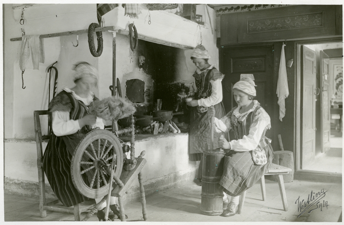 Gammelgården. Verksamhet framför spisen, 1930-tal.