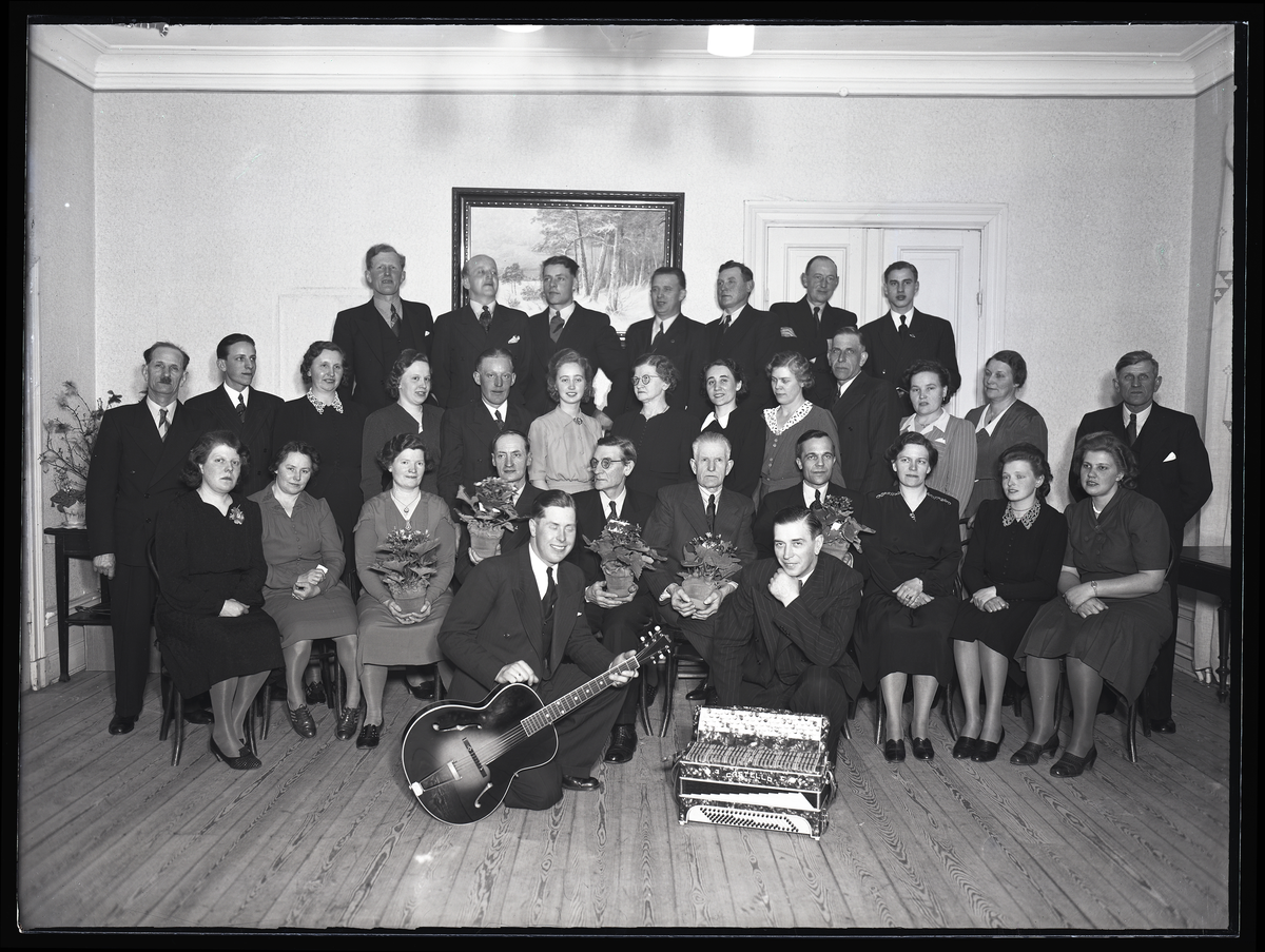 Grupporträtt. Träarbetar. Fackför. på Hotellet, Kolbäck.