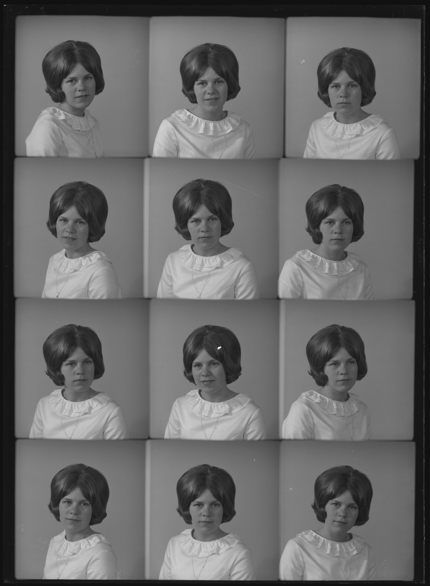 Kvinnoporträtt, Konfirmation. Irene Pettersson, Sofielund, Strömsholm. Ur Gustaf Åhmans samling.