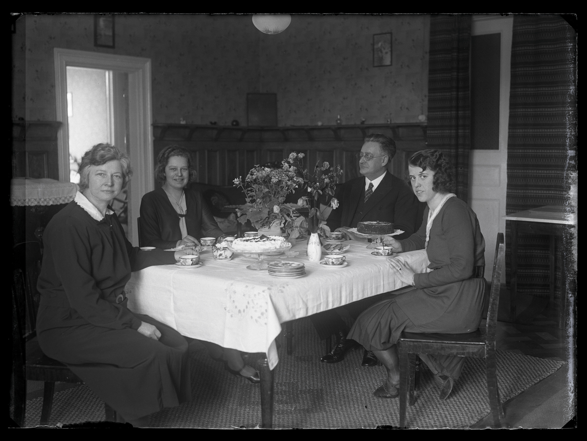 Grupporträtt, kaffestund. Familjen Striboltz.