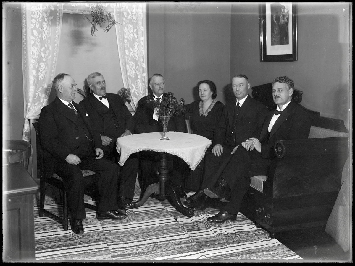 Grupporträtt, sex personer. Nat. Hult, Kolbäck.
