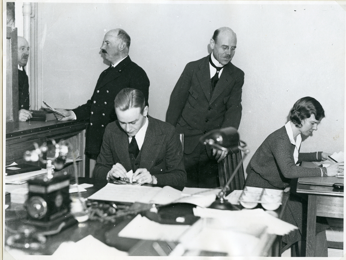 Tullförvaltare Kilberg med personal i gamla Tullhuset, c:a 1926-1927.