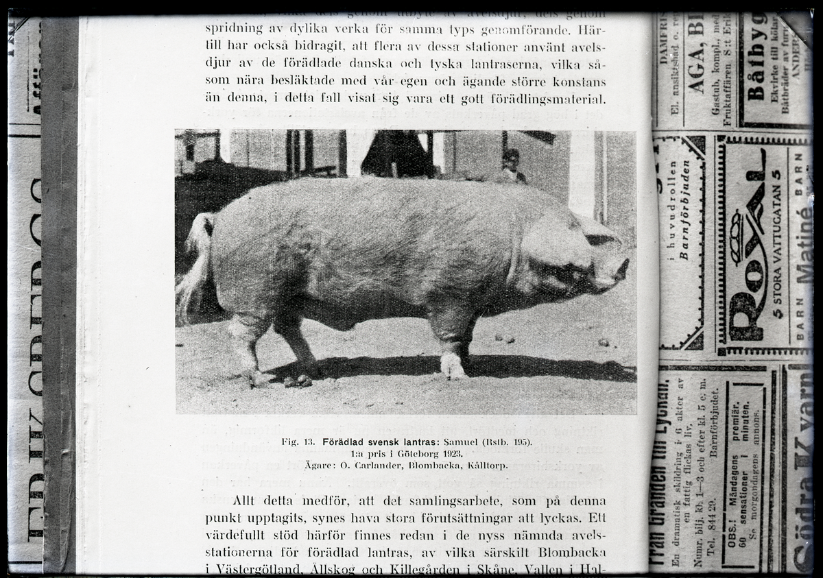 Avfotograferad bild av gris. (skiopt.). Förädlad svensk lantras. Dir. Celsing.