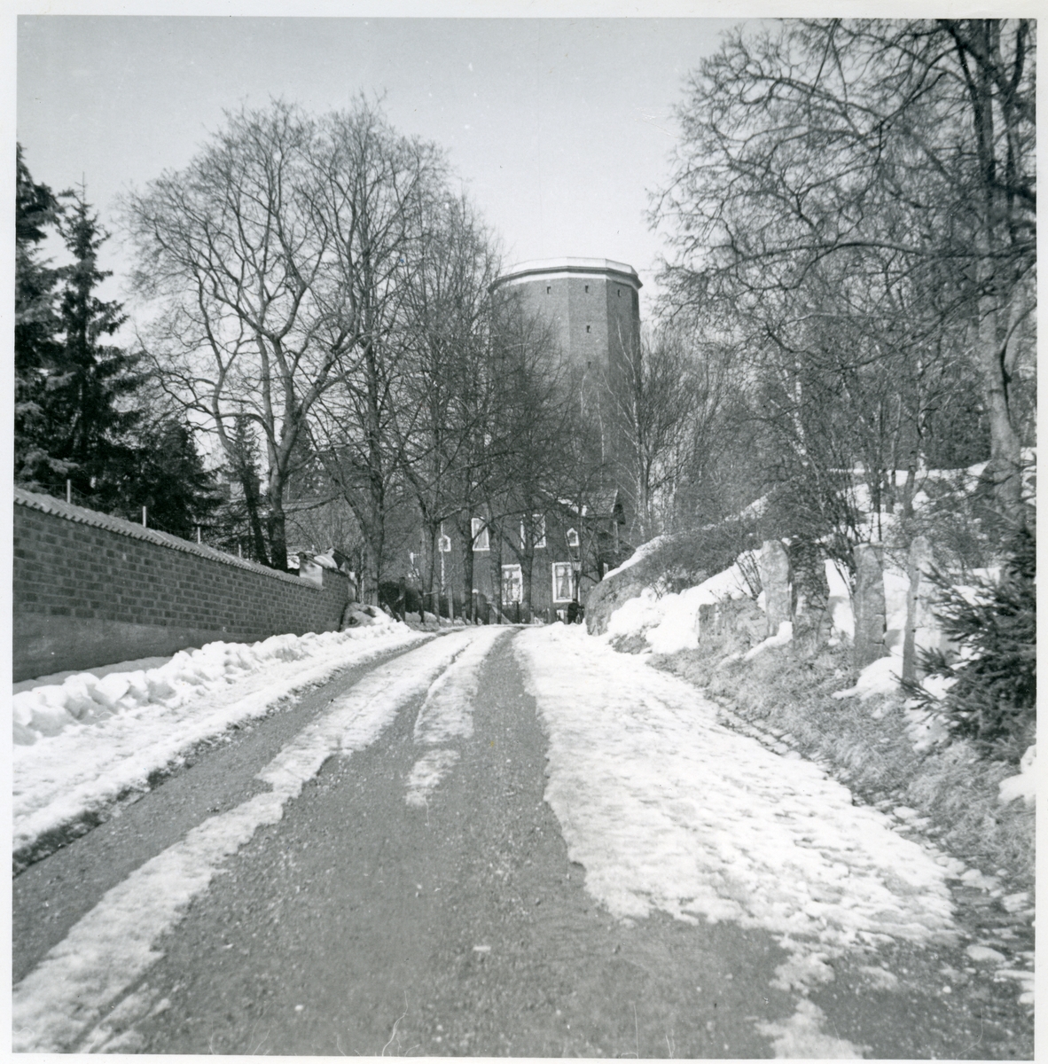 Vattentornet från Kristinagatan vid Djäknebergsgatan. 1937.