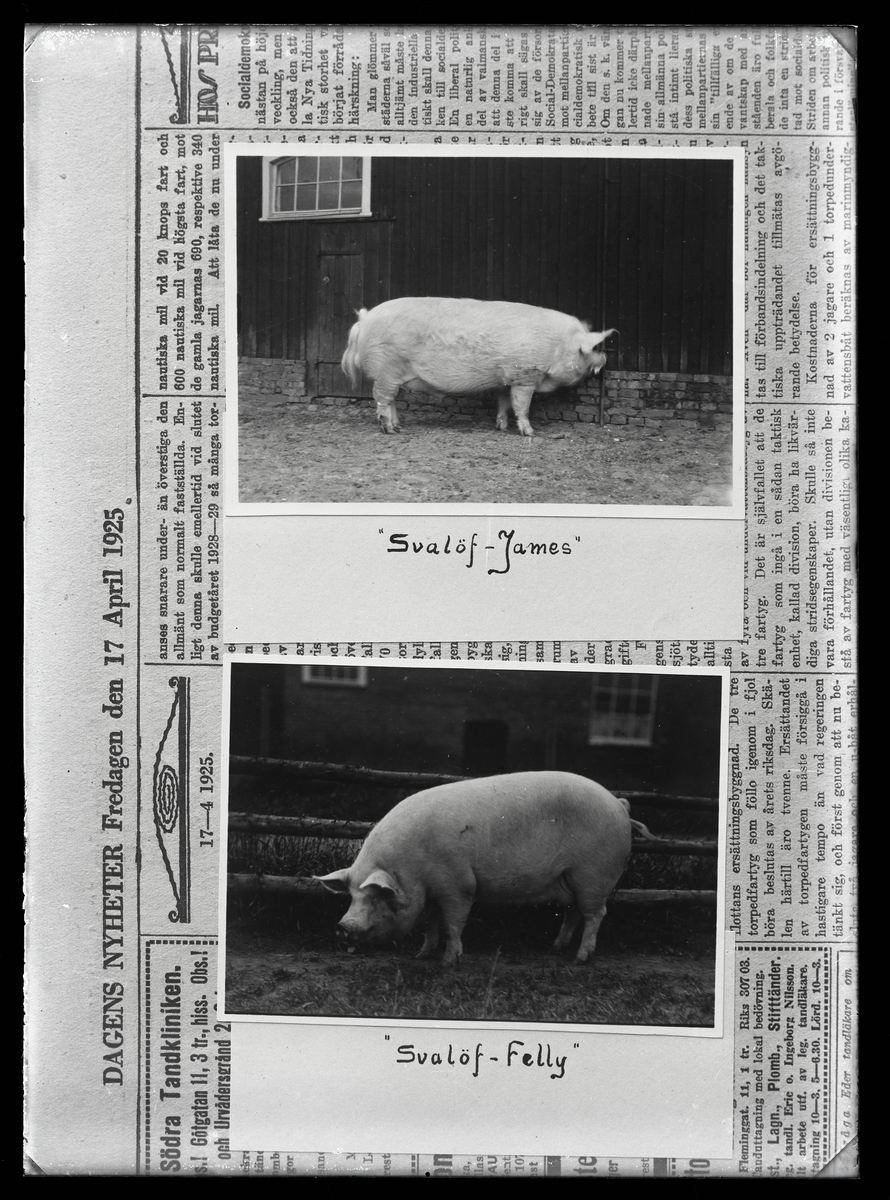 Avfotograferad bild av gris. Svalöf-James och Svalöf-Felly. Dir. Celsing, Kolbäck.