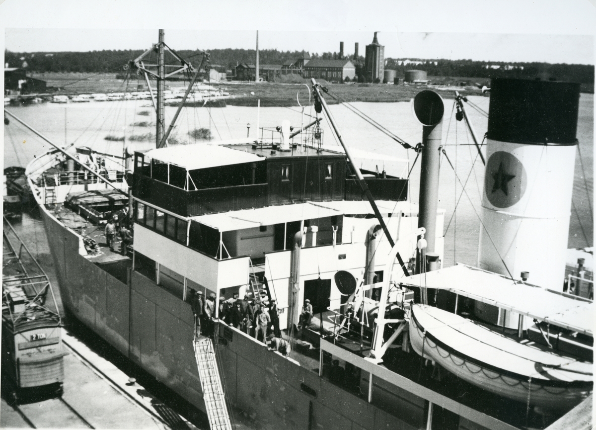 Lossningsgäng ombord på S/S Cecilia, 1936.
