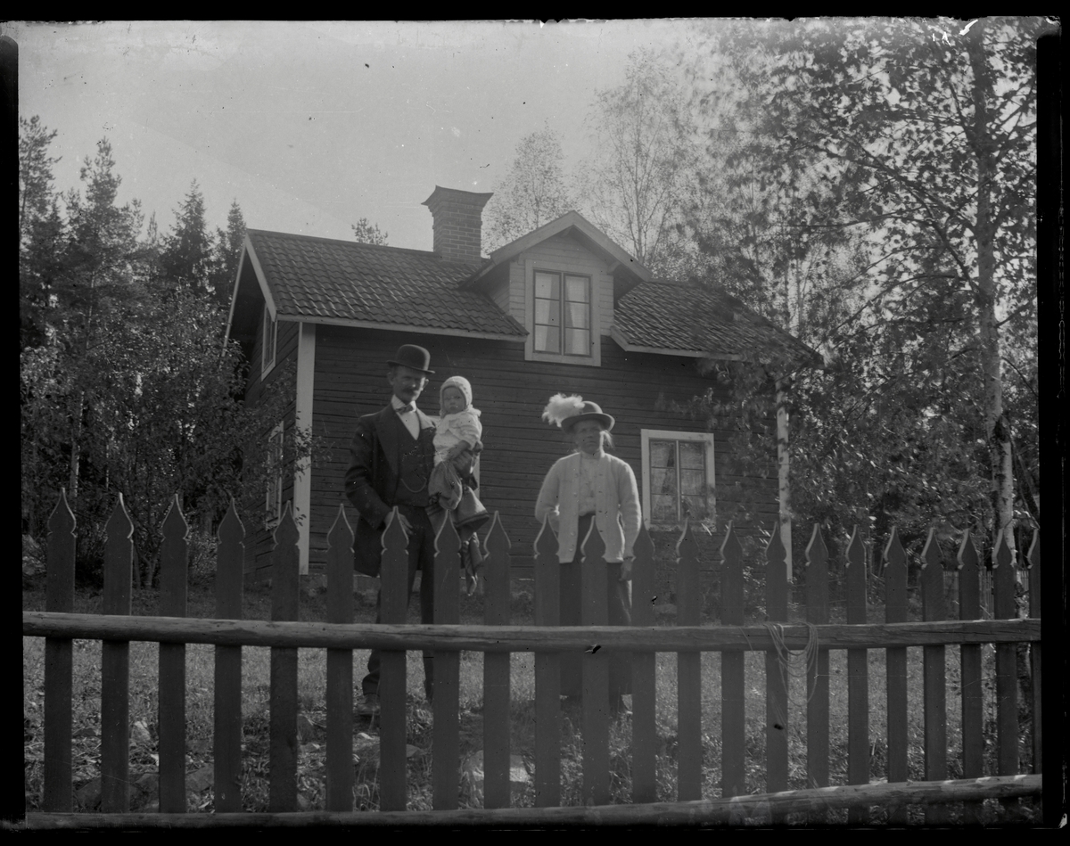 Grupporträtt framför byggnad. Vretarne, Västervåla?