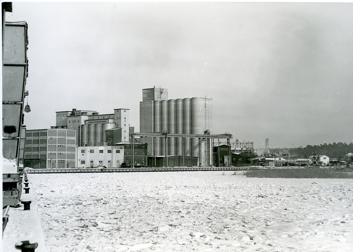 Titel: Västerås, Munkängen. Vintermotiv från hamnområdet i Västerås, med Silon m.m.
