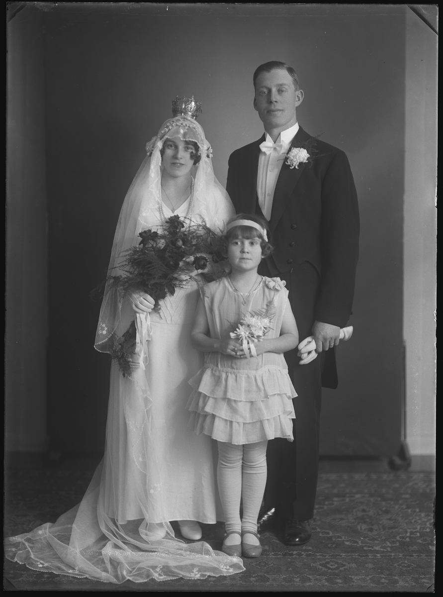 Grupporträtt - Brudpar. Harry Larsson. Ur Gustaf Åhmans samling.