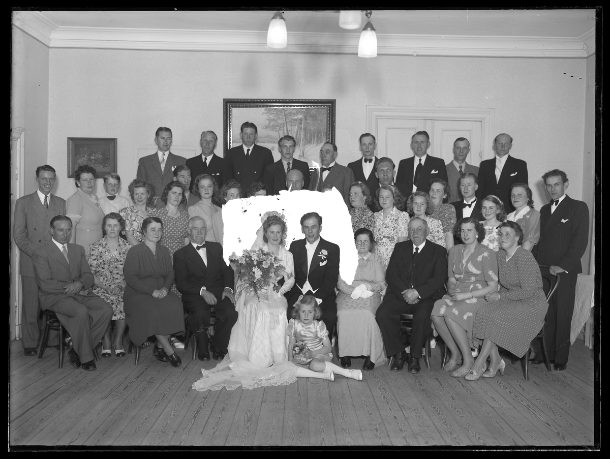 Titel: Grupporträtt, bröllop. Bertil Norén, Näsborg, Näs, Hallstahammar. Ur Gustaf Åhmans samling.