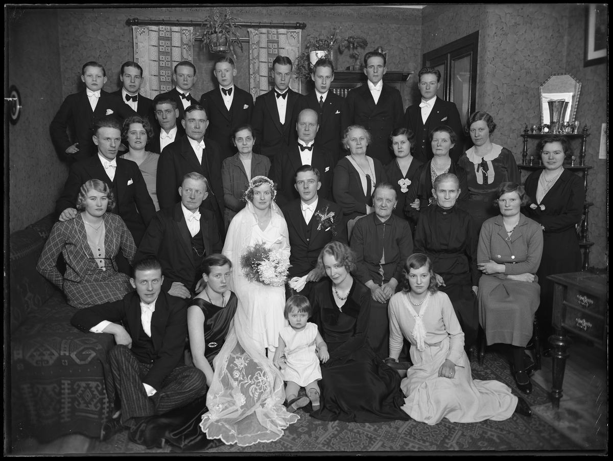 Grupporträtt, bröllop. Adrian Andersson, Mästergården, Hallstahammar.