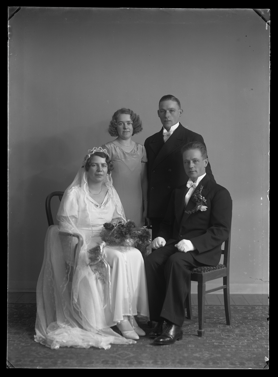 Grupporträtt, bröllop. Erik Sjögren, Lyckhem, Kolbäck.