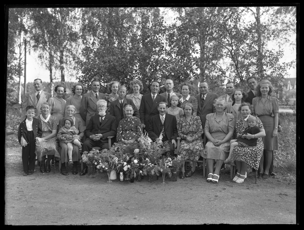 Släktporträtt utomhus. Lindgren, Nybro.