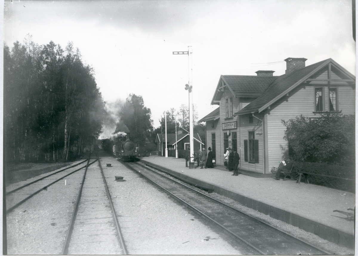 Ånglok vid järnvägsstationen i Strömsholm. C:a 1915-1920.