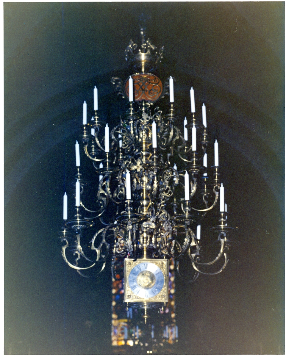 Norbergs kyrka. Ljuskrona med klocka, 1971.