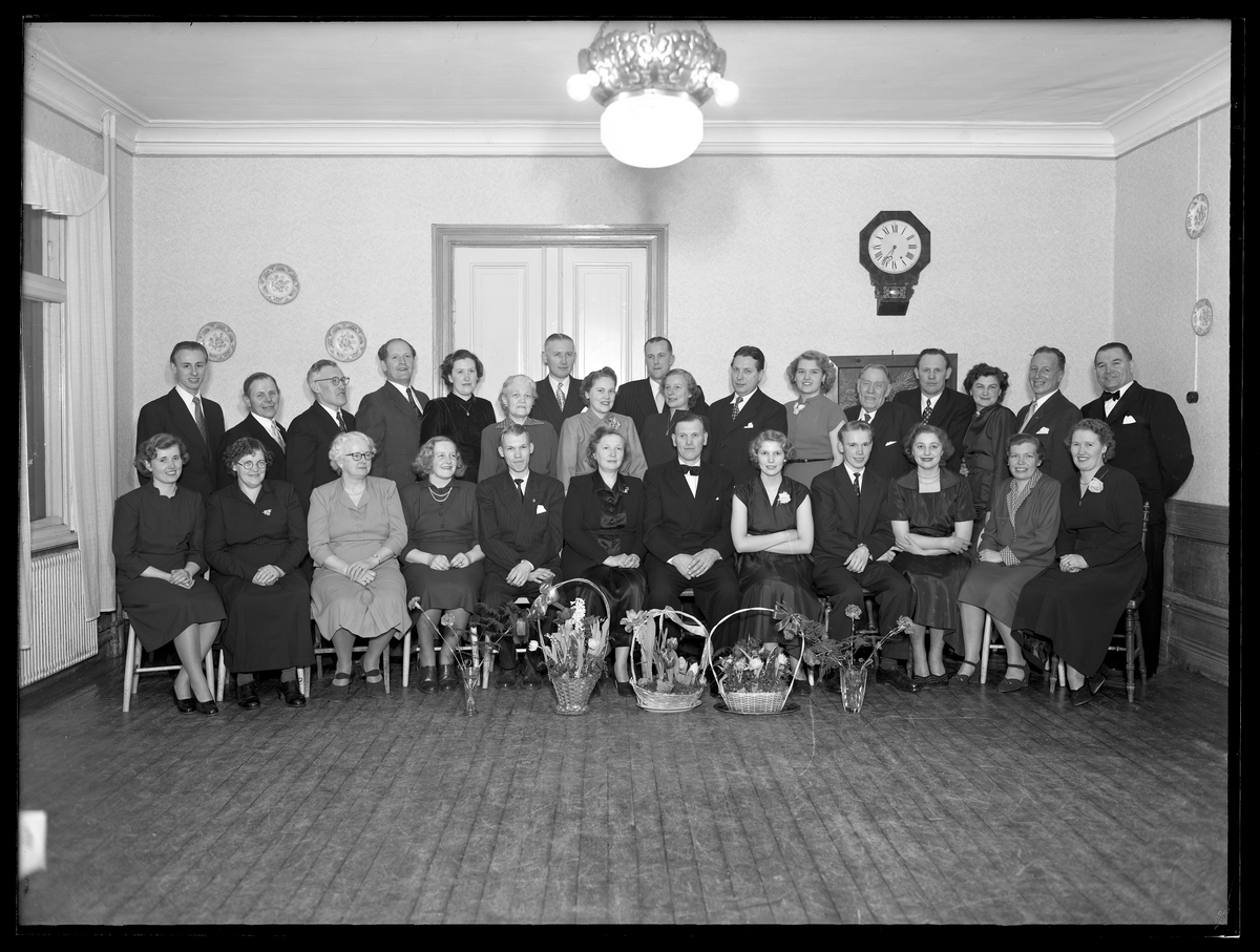Grupporträtt, födelsedag 50 år. Sven Eriksson, Hingstdepån, Strömsholm.