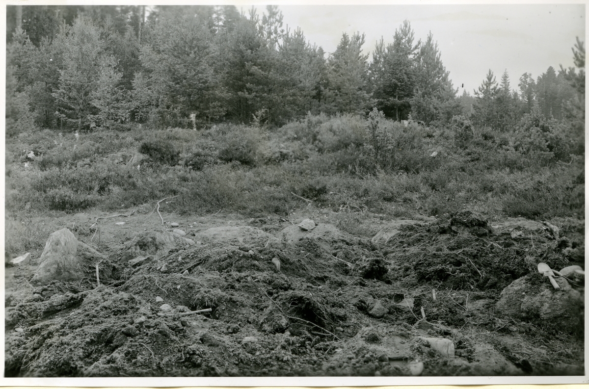 Alvesta nr 3, fornlämningar nr 8, 9, 13 9 och 16 från nordväst före undersökningen, sedan skymmande träd och buskar borthuggits. 1951.