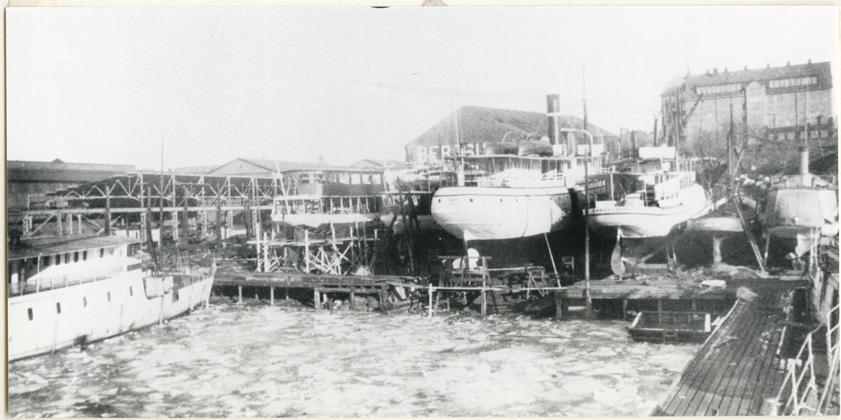 "Aros" och "Engsö" under vårutrusningen vid Bergsunds varv vid Hornstull, 1927.