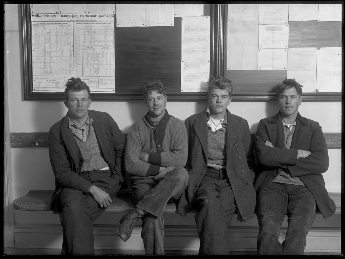 Grupporträtt, fyra personer (lönnbrännare). Landsfiskal Gråberg, Kolbäck.