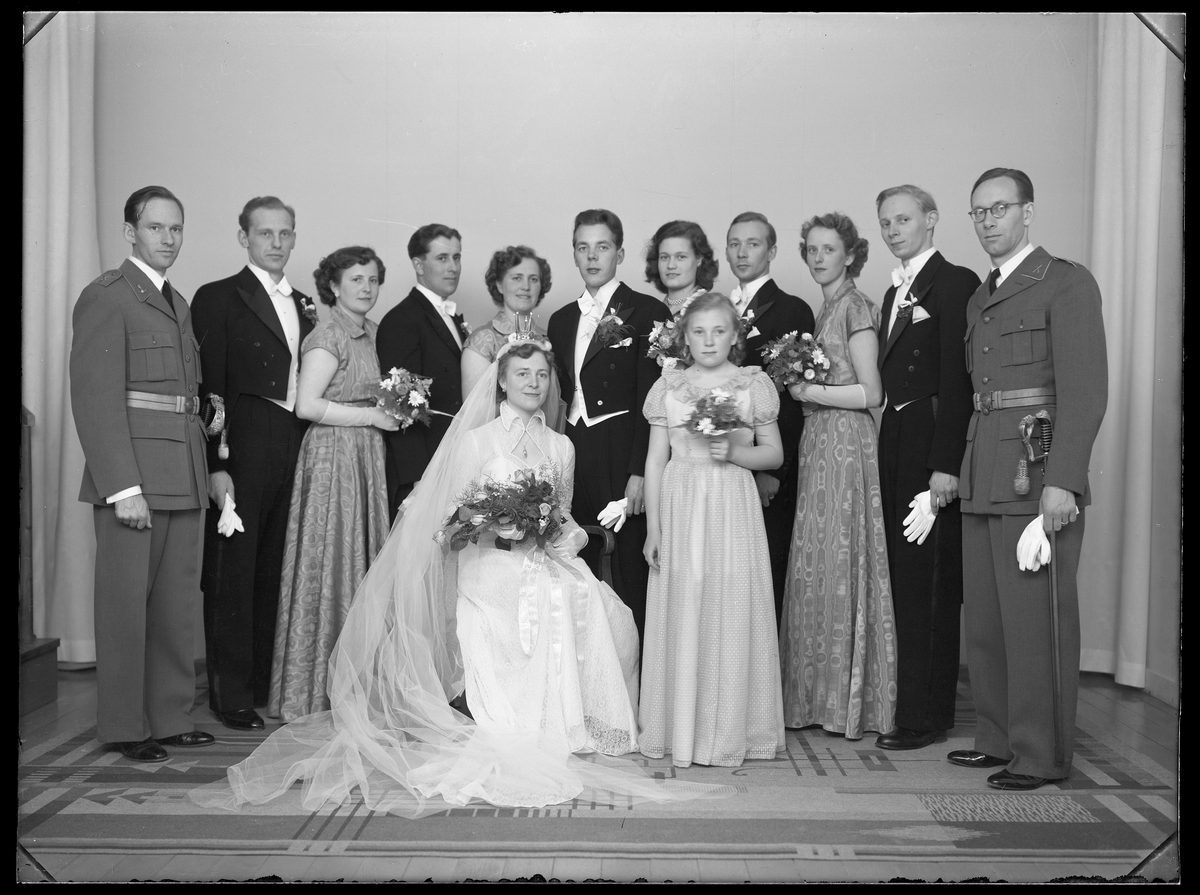 Grupporträtt, bröllop. Sven Källberg, Box 209, Fjugesta.