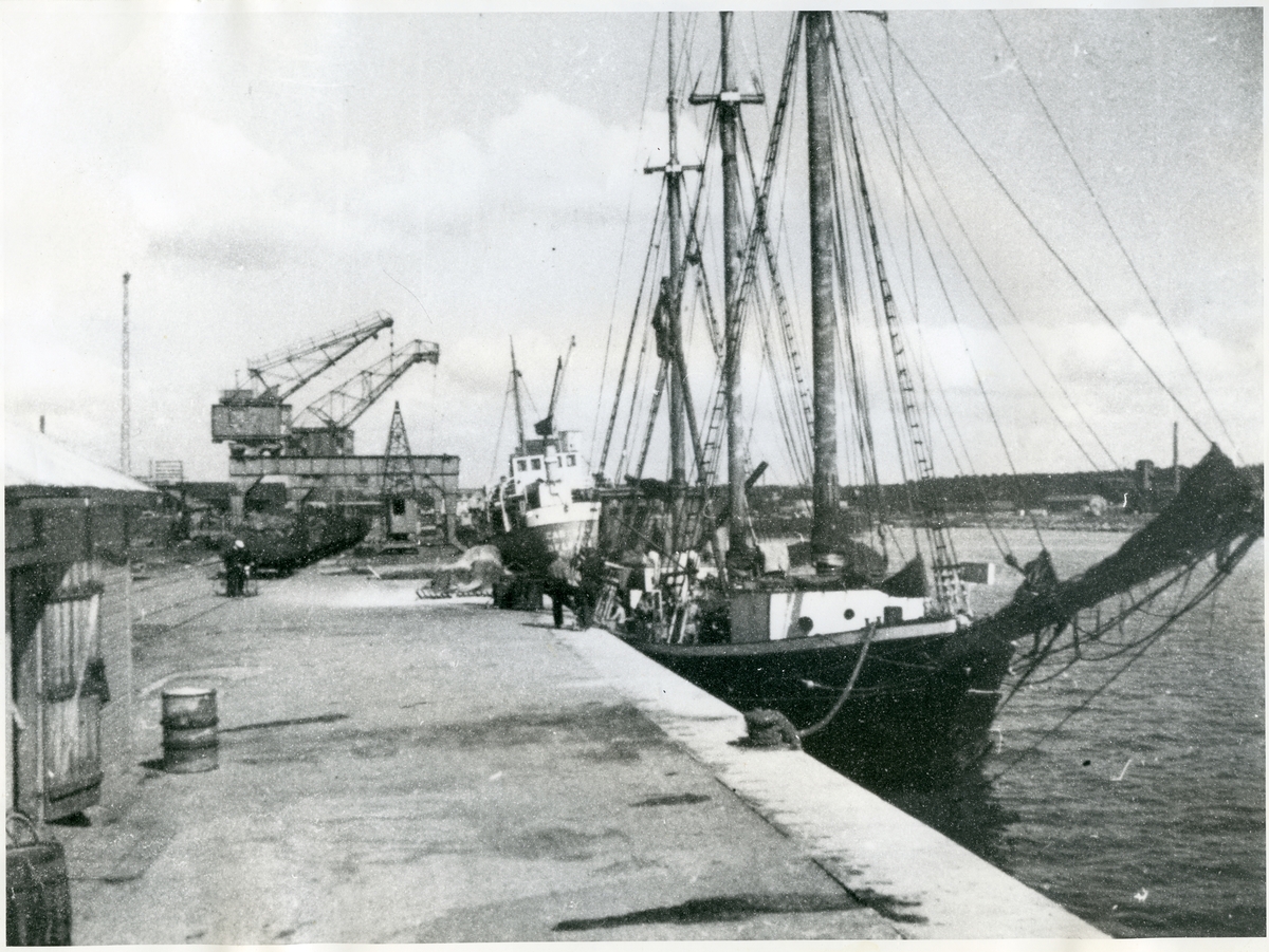 Östra kajen, där den tidigare träbeläggningen ersatts med betong, 1936.