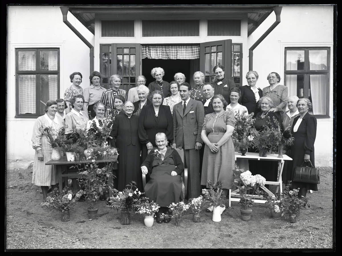 Grupporträtt, födelsedag 90 år. Fru Malla Pettersson, Hermansro, Kolbäck.