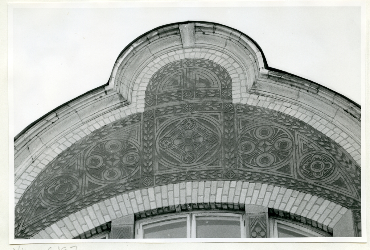 Engelbrektsgatan 19. Dekorationsbård på Herrgärdsskolans huvudbyggnad.