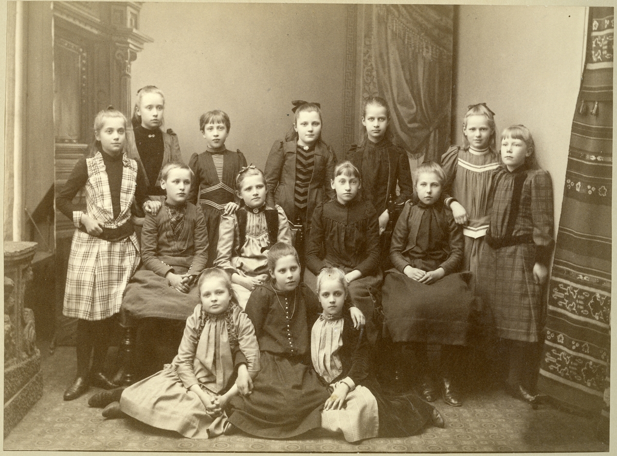 Elever vid "Natalia Anderssons högre skola för Quinlig Ungdom". C:a 1885-1888.
