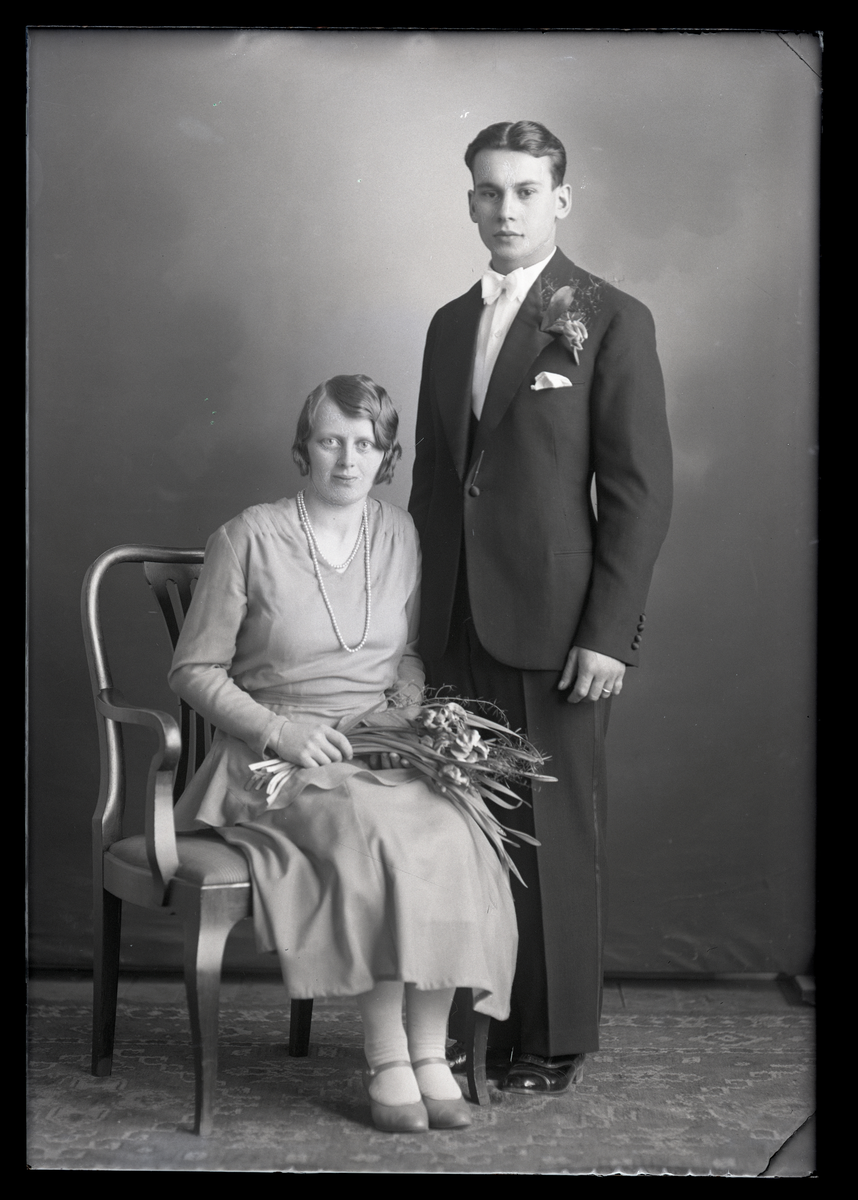 Brudpar. Karl Karlsson, Sveaberg, Lustigkulla, Hallstahammar.