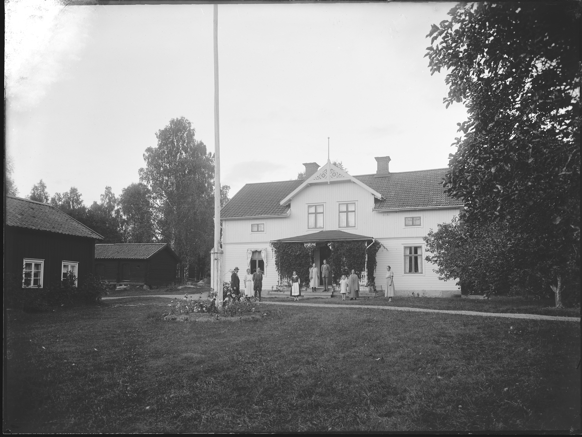 Grupporträtt framför hus. G. Olsson, Bärsta, Kolbäck