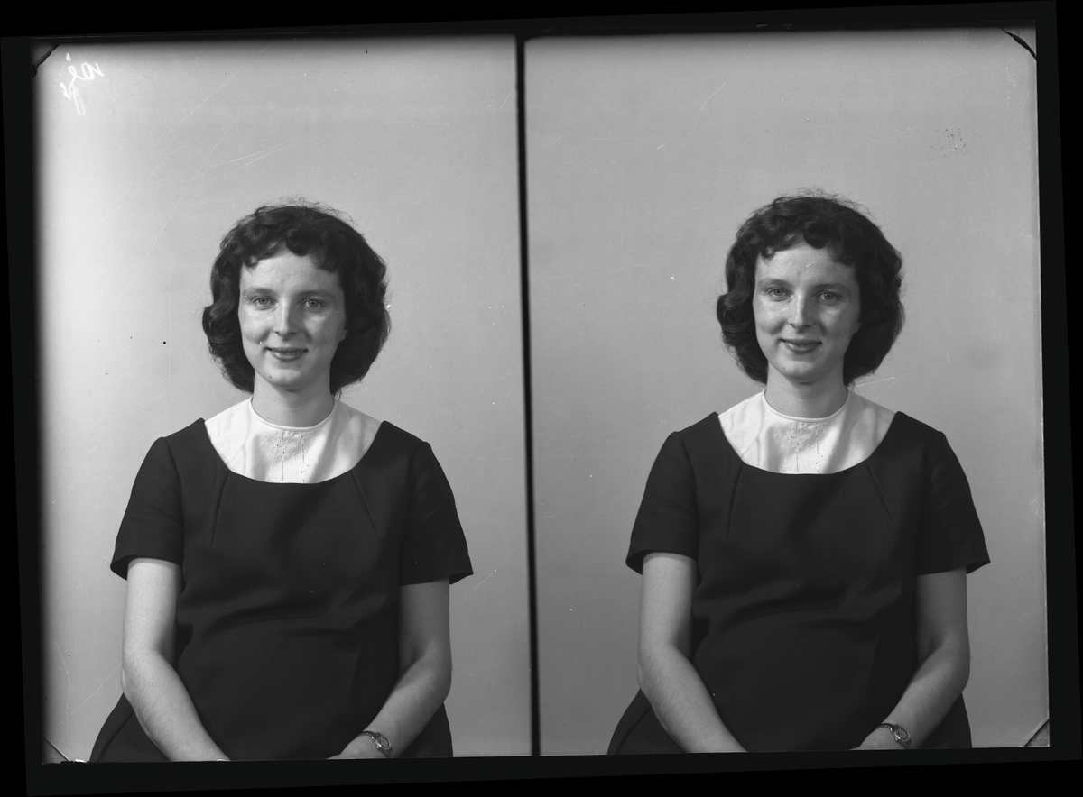 Kvinnoporträtt, passfoto. Fru Vilja Kallmins, Äggsjögatan 6 B; Kolbäck. Ur Gustaf Åhmans samling.