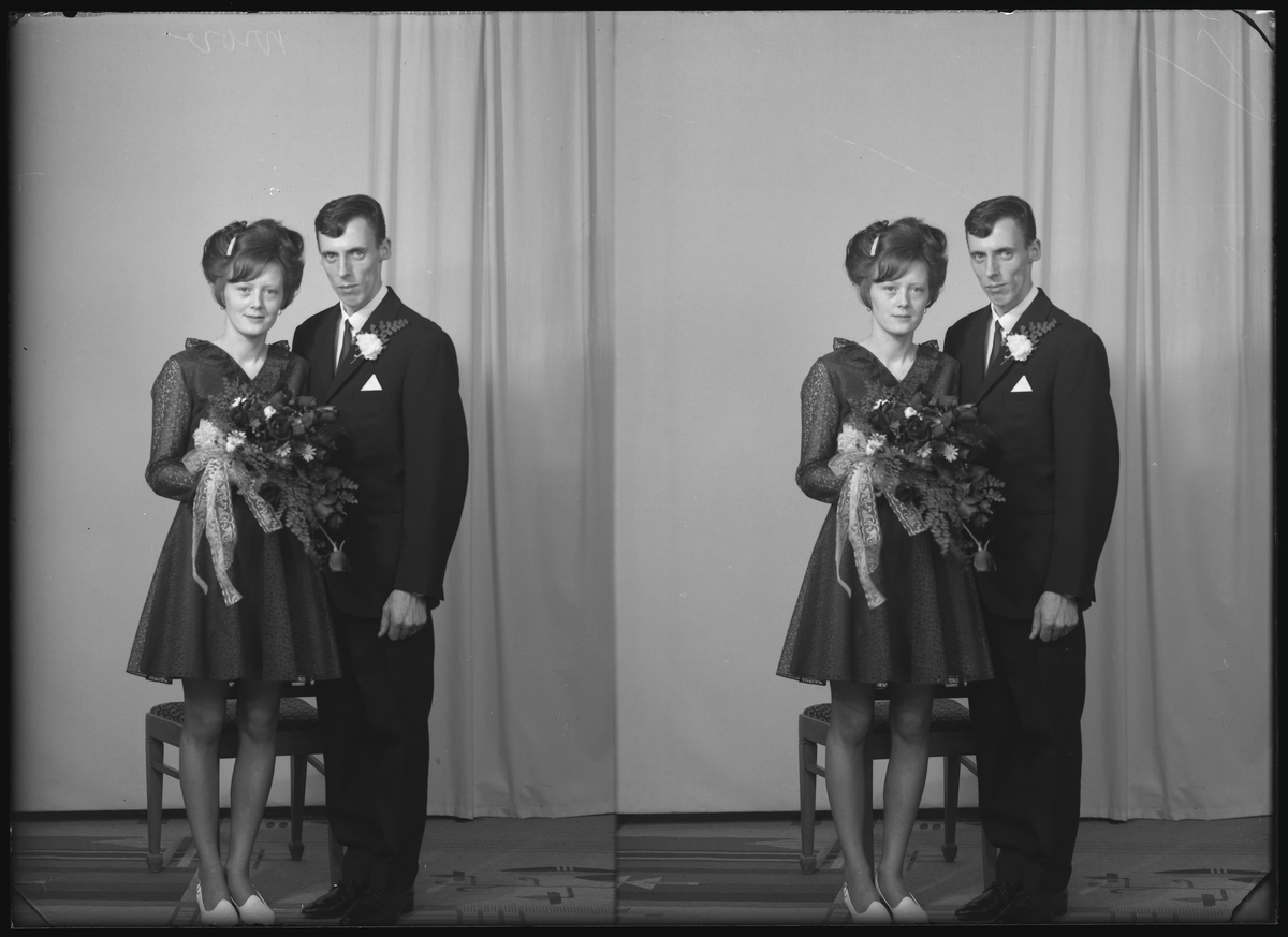 Brudpar. Gunder Karlsson, Hagvägen 18B, Kolbäck. Ur Gustaf Åhmans samling.