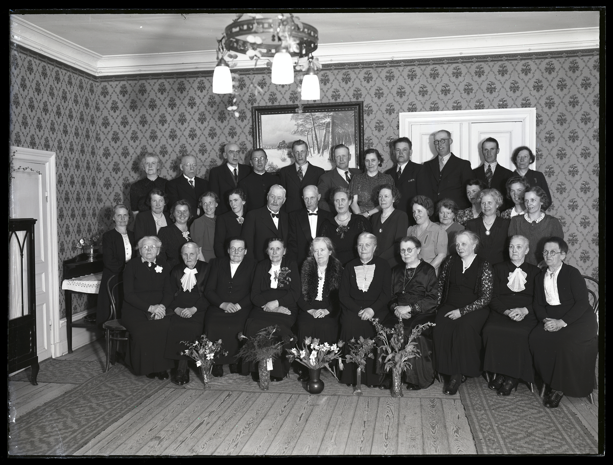 Grupporträtt, födelsedag 80 år. Fröken Andersson, Lärarinna, Hallstahammar (Sköld).