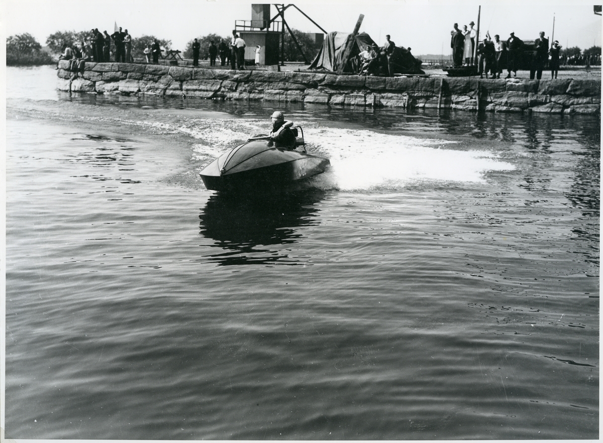 Motorbåt utanför murbrukskajen, 1930-talet.