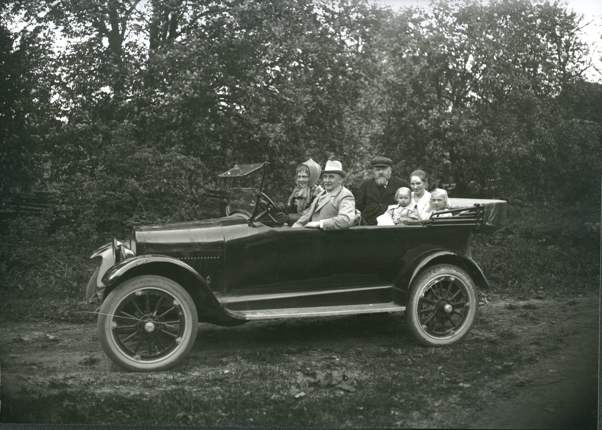 Bil med familjen Jacobsson. Darsta Kungsåra, Västerås.