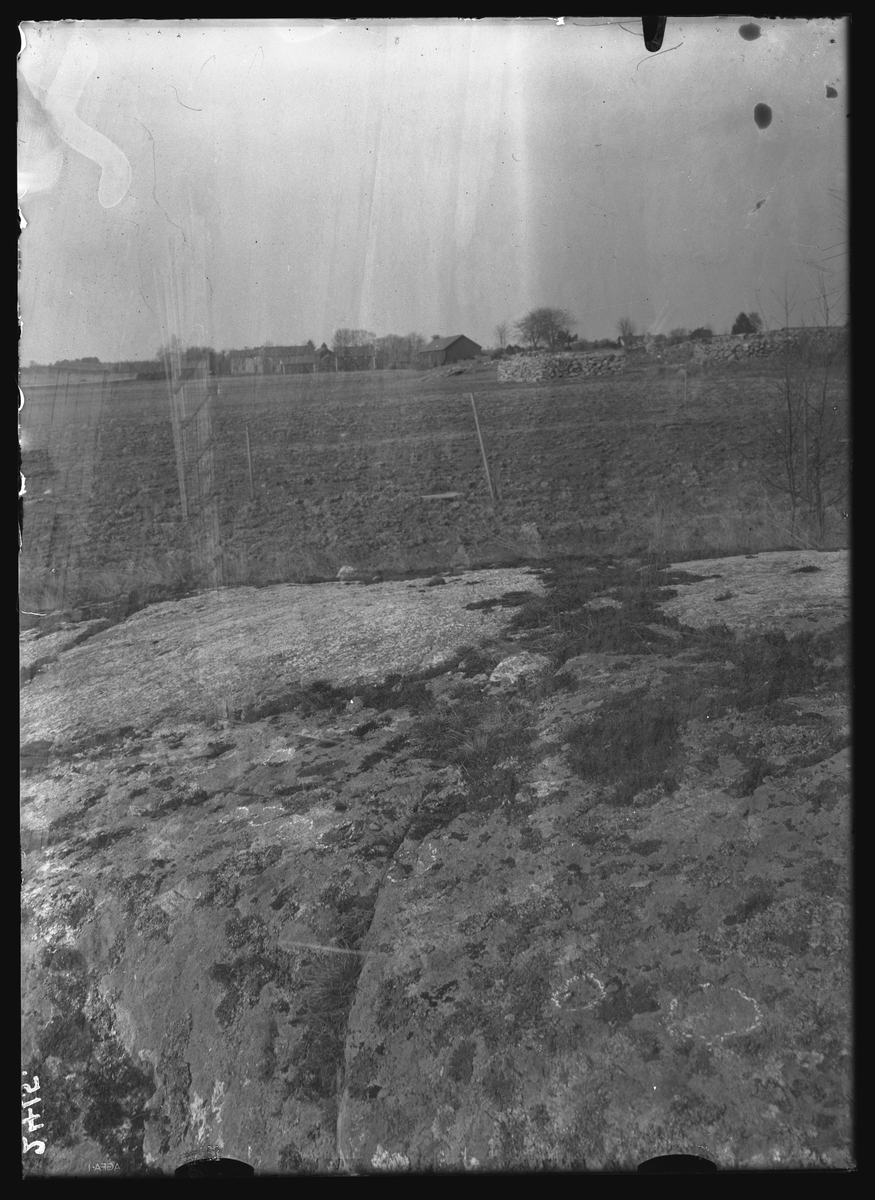Häll, med skålgropar efter sprängning, i Bjuggsta, Västerås.
