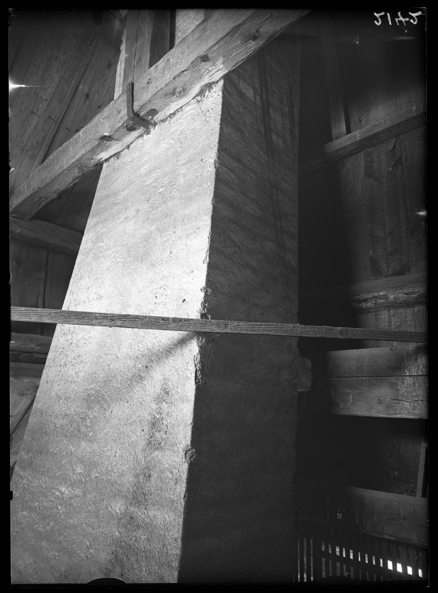 Titel: Skorstensmur på Hallstahammars herrgård, Hallstahammar. Före flytten till Vallby friluftsmuseum, Västerås.