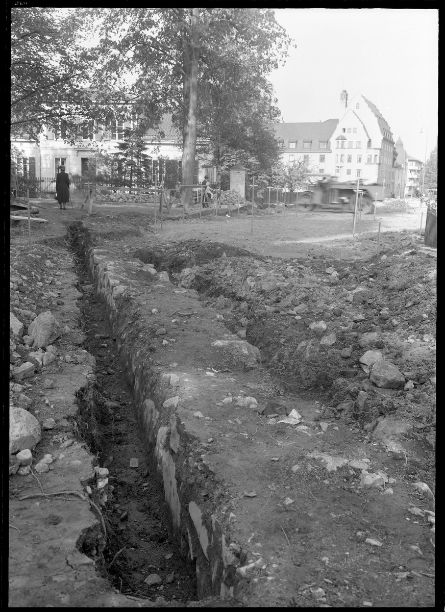Rester av gamla kyrkogårdsmuren s. om kyrkan, Västerås.