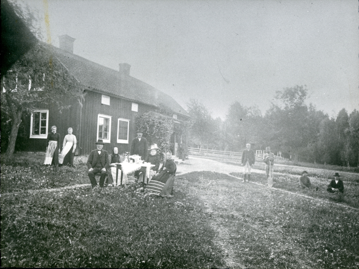 Folk framför bostad, c:a 1900.