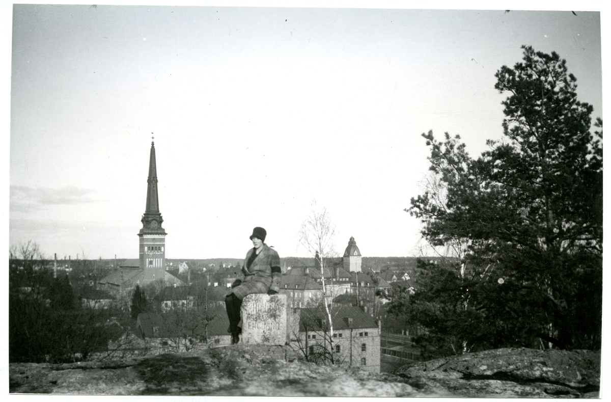 Vy över Västerås från Djäkneberget, med Domkyrkan.