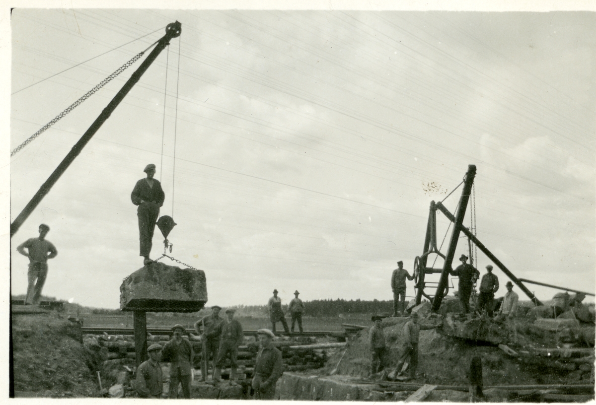 Stenbrytning vid Gustav Sörboms stenhuggeri, ca 1910-20-tal.