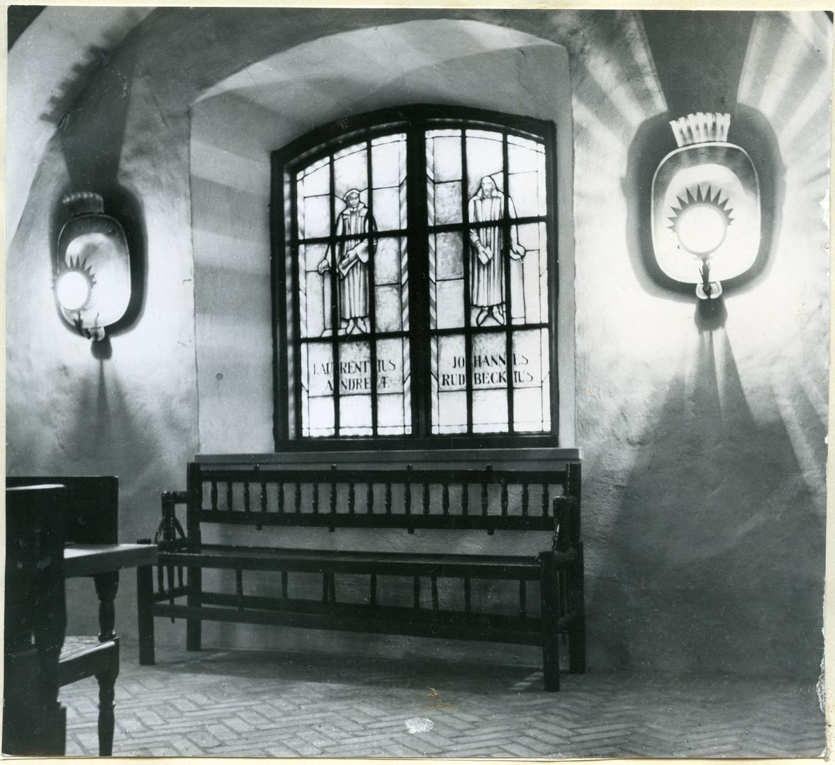Interiör med kyrkfönster i Västerfärnebo kyrka.